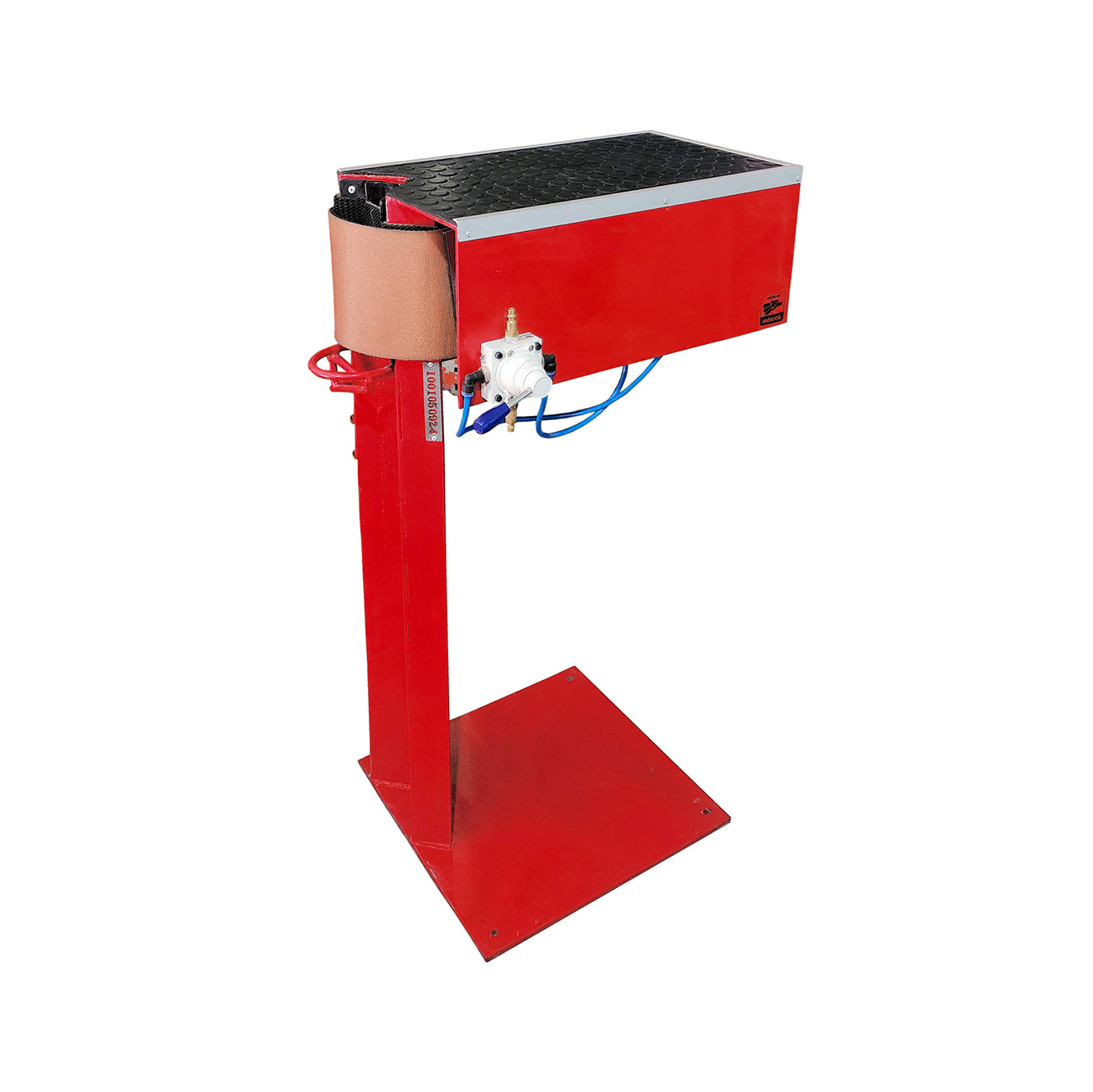 La prensa 819-SO14H opera con una presión de trabajo de 90 PSI y cuenta con una base fija para anclaje al piso, lo que aporta estabilidad durante su uso. Sus dimensiones de 40 × 90 × 50 cm permiten trabajar con distintos tamaños de extintores, adaptándose a las necesidades del taller. El sistema neumático mantiene una sujeción constante, ayudando a prolongar la vida útil de los equipos intervenidos y a reducir el desgaste por manejo manual.